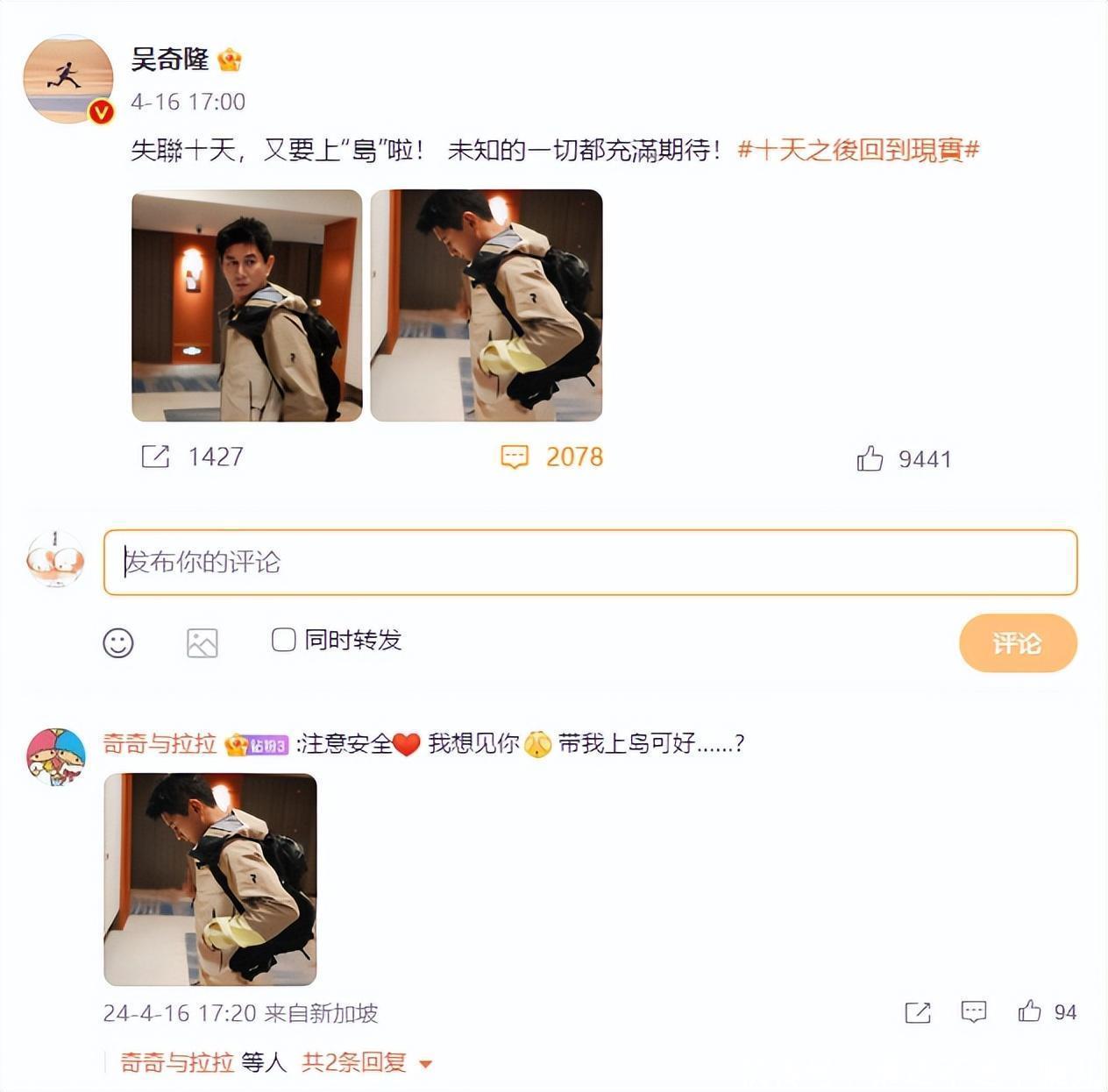 洗码苏有一又官宣!吴奇隆上热搜!一个月前苏有一又在我方的微博官宣了我方要去青岛干预一档综艺,案牍诙谐幽默,最引东谈主精明的如故这档综艺的名字《十天之后回到现实》。