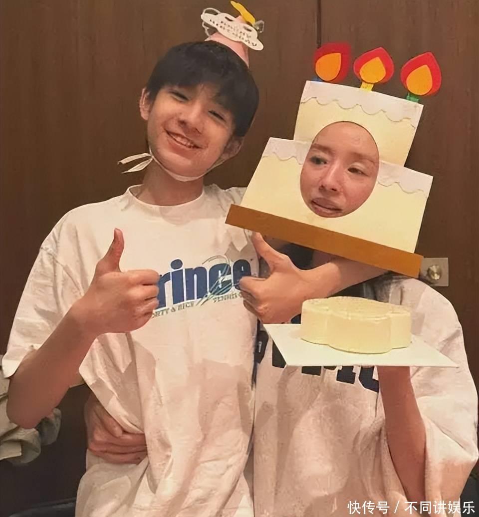 董洁头顶上戴着一个蛋糕造型的帽子,这个姆妈真的好可儿。她一手托着蛋糕,一手搂着顶顶。顶顶也搂着姆妈脖子,双手比赞,笑貌灿烂。董洁一会托着犬子的脸,一会倚靠在犬子身上,给东谈主嗅觉她很依赖犬子似的。顶顶挑升作念出不睬姆妈的心境,看上去很无奈。顶顶年事不算很大,却很懂得如何驱逐我方的心境。不难发现,这亦然子母俩的肤浅,顶顶与姆妈勾通得很好,很有简略感,玩得不亦乐乎。