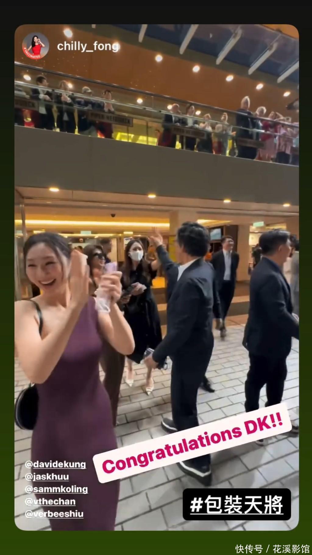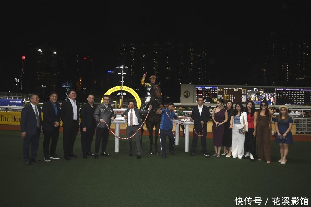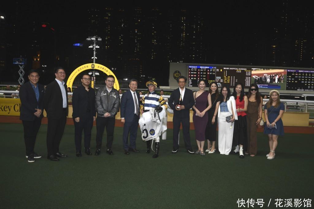 昨晚吕健威马房的“包装天将”首度出赛,即大热胜出,鲜有现身马场的高海宁果然也有份拉头马,况兼更是她的第一次,还站在马主李文祯丈夫龚钫傍边,其他东说念主还有“细龙太”陈念念圻、2014年港姐冠军邵珮。